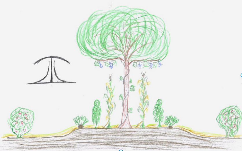 Eine immer mehr Raum einnehmende Baumscheibe, die mit der Kronenentwicklung mitwächst, kann in wenigen Jahren von einer kleinen Gemüsefläche mit Baum zu einem stabilen Ökosystem heranwachsen, das Nahrung, Schatten, Artenvielfalt und Bodenaufbau vereint.